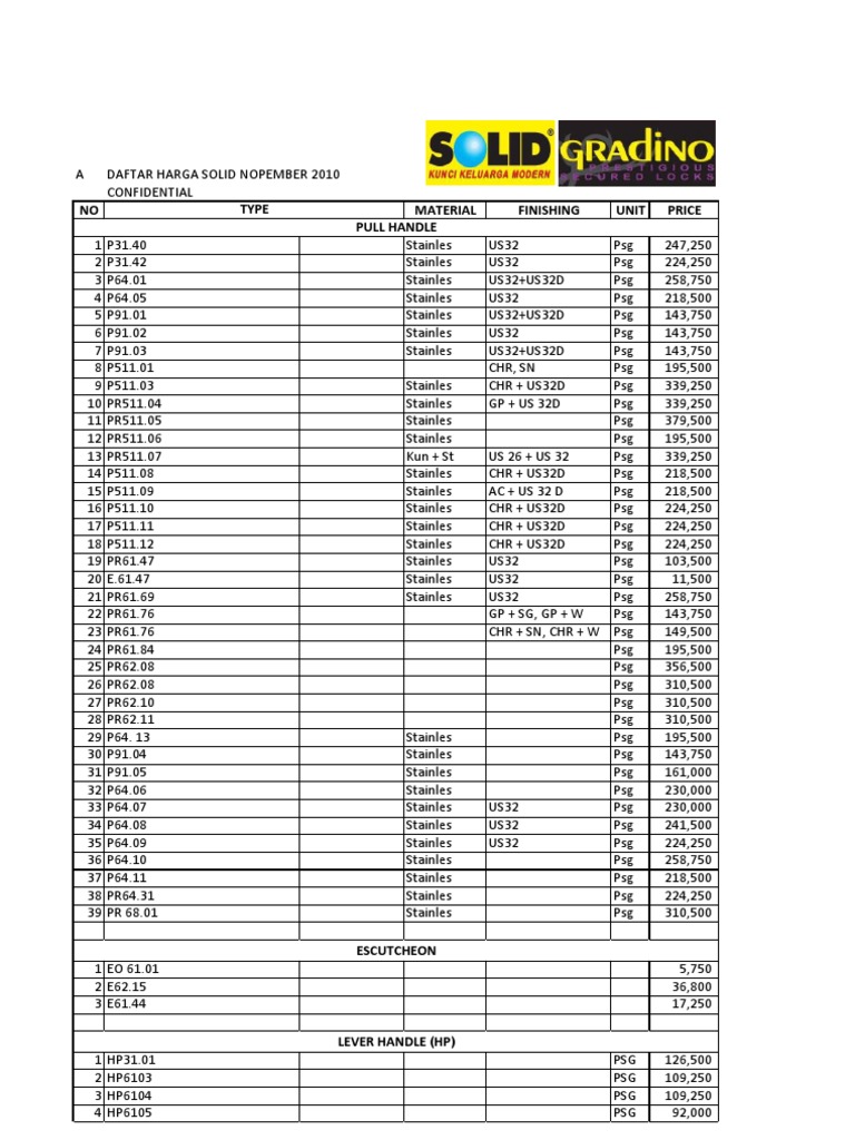 Harga grendel pintu, model kunci pintu, kunci pintu rumah minimalis, merk kunci pintu, kunci pintu solid. Documents similar to daftar harga solid nop 10. Home » daftar harga » engsel » harga engsel » harga engsel pintu, jendela dan model lainnya. Situsbangunan.com, pada kesempatan kali ini akan mengulas informasi mengenai daftar harga engsel pintu / jendela terbaru berbagai merk. Pagar brc atau british reinforced concrete biasa diterapkan sebagai pelindung area luar ruangan.